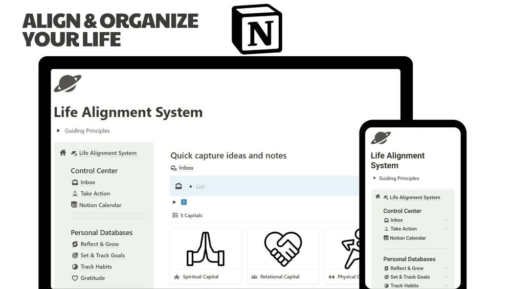 LIFE ALIGNMENT SYSTEM PRO | Reach Goals | Get Organized | Be Productive | Notion System |